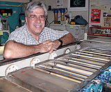 24.09.2007 Für sieben Jahre ausgesorgt Mitten in einem Berner Wohnquartier trotzt ein kleines Fotofachlabor dem digitalen Zeitalter und hat mit Super 8 eine neue Einnahmequelle gefunden. Von Beatrice Jäggi Im Schaufenster des Eckhauses an der Gewerbestrasse 22 lagern unzählige leere Filmpatronen. Tatsächlich scheint auf den ersten Blick im kleinen Fotofachladen Graficolor die Zeit still gestanden zu sein. Nicht, dass sich der Geschäftsinhaber Ruedi Egli und seine Frau Rosmarie Egli-Baldauf gänzlich der digitalen Technik entsagt hätten. Auch in ihrem kleinen Arbeitsreich hat der Computer längst Einzug gehalten, für Bildbearbeitung Farbkorrekturen etc. Das Kerngeschäft ist und bleibt jedoch die chemische Foto- und Filmverarbeitung. Angeboten werden z. T. Arbeit, die mittlerweile sonst nirgendwo mehr gemacht werden wie. z.B. die R3-Fotoentwicklung. Mit diesem Verfahren werden Fotoabzüge direkt ab Dias gezogen, d.h. positiv ab positiv. «Als Kodak 2003 die Einstellung bekannt gab, kaufte ich sofort noch alle Restbestände an Papier und Entwicklungschemie auf. Die reichen sicher noch bis anfangs des nächsten Jahres.» Im ersten Stock des Hauses befindet sich das hausinterne Filmentwicklungslabor. Hier verarbeitet Egli seit gut zwei Jahren auch Super-8-Farbumkehrfilme wie der 64T von Kodak. Als im Mai 2005 das Ende des Kodaklabors bekannt wurde war man bei Kodak Lausanne wenigsten darum bemüht, für die Schweitzer Kundschaft von Super 8 ein landeseigenes Labor sicher zu stellen. Zuerst hatte Kodak Lausanne einen anderen Laborbetrieb für die Entwicklung des damals neu eingeführten Ersatzfilms 64T angefragt. Dem Betrieb war das Auftragsvolumen aber zu klein, und die Super-8-Filmenwicklung auf dem Rahmensystem erwies sich als unbrauchbar. Heute ist in der ganzen Schweiz nur noch eine Durchlaufmaschine für die E6-Filmentwicklung übrig geblieben, und diese Maschine befindet sich bei Graficolor in Bern. Diese Maschine, Baujahr 1978, ist eigentlich für die Verarbeitung von 35-mm-Diafilmen ausgelegt. Für die präzise Entwicklung der viel schmäleren Super-8-Filme, waren einige bauliche Anpassungen nötig, die Egli selber vornahm. So muss beispielsweise die zirkulierende Anreicherung der Chemie mit neuer Dosierung sowie die Wasserzufuhr für die Zwischenwässerungen gedrosselt werden. Für den Filmeinzug, es laufen immer zehn Super-8-Flime parallel durch die Bäder, musste er eine spezielle Vorrichtung bauen. Genau 45 Minuten dauert es, bis die entwickelten Filme am anderen Ende der Maschine herauskommen. Ein Moment den Egli immer ganz genau abpassen muss, damit er die Filme rechtzeitig auf der Auffangvorrichtung einfädeln kann. Sonst läuft der ganze 15 Meter lange Schnürsenkelstrang in einen Auffangtrog was ein ziemliches Durcheinander zur Folge hätte. Bereits 300 Kunden lassen Ihre Super-8-Farbumkehrfilme bei Graficolor entwickeln. Egli bekommt auch immer wieder Anfragen aus dem Ausland, verarbeiten möchte er aber nur ausschliesslich Filme von Schweizer Kunden. «Mit all den Spezialwünschen, die immer wieder kommen, bin ich schon so genug gefordert. Schliesslich gibts ja in allen umliegenden Ländern noch Labors, die das auch machen» meint Egli dazu, der kein Französisch sprich aber einen Grossteil an Kunden aus der französisch sprechenden Westschweiz bedient. Und am Ende muss wieder jeder Film dahin, woher er eingesandt wurde. Damit jeder Filme wieder im richtigen Versandbrief landet, führt Egli mit einem speziellen Nummerierungssystem ganz genau Protokoll. Tatsächlich kam es seit den gut zwei Jahren Super-8-Entwicklung bislang nur zu einer Verwechslung. «Eines Tages hatte ich einen sehr aufgebrachten Herrn am Telefon, der nicht sein eigener Film vorfand. Ich konnte dann aber aufgrund meiner Belegzettel schnell den anderen Kunden ausfindig machen.» Und dann kommen natürlich auch immer wieder Anrufe vornehmlich von älteren Herren mit der Frage, wie lange er noch Super-8-Filme entwickeln werde. «Wir machen sicher noch die nächsten sieben Jahre weiter. Bis zu meiner Pension» Die Antwort die er darauf erhält lautet nicht selten «Schön, das ist da noch genug lange für mich!» |
