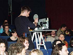 | Global Super 8 Day - Feedbacks Super 8 Filmabend Bremen war dabei! Anlässlich von vierzig Jahren Super-8-Filme wurde weltweit in 40 Kinos der «Global Super 8 Day» gefeiert: von Amsterdam bis Zürich, von Albury ( Australien), Buffalo ( USA ) und Lissabon (Portugal). Wie nach dem grandiosen letzten Super-8-Abend zu erwarten war das Kino 46 am 8. Mai 2005 gefüllt mit erwartungsvollen Film- und Musikliebhabern, Film- und Musikmachern jeden Alters. Die besondere «rohe» Ausstrahlung des Super-8 Materials überträgt sich auf das Kino: die Atmosphäre ist Erwartung, Neugier, Phantasie, Improvisation. Nie gesehen: zehn Kurzfilme direkt aus dem Entwicklungslabor auf die Leinwand - weder Organisatoren noch ihre Macher hatten sie vorher gesehen. Hat die Belichtung funktioniert? Hat die Kamera richtig transportiert? Nie gehört: vier Musiker vertonen live auch sie kennen von den Filmen lediglich die Titel und ungefähre Länge. André Feldhaus hatte Musiker eingeladen, die mit Bass- und Querflöte, Klavier und Percussion ein jeweils einfühlsames und einzigartiges Klangbild zu den Filmen schufen. Es wird eine DVD von den Filmen und der mitgeschnittenen Musik geben aber die Stimmung, die Gespräche mit den Filmschaffenden und Musikern sind nicht reproduzierbar es sei denn beim nächsten Super-8 Abend, der im Herbst folgen wird! www.filmbuero-bremen.de PROGRAMM SUNDAY May 8th, 20.30h/8.30pm Who are you? von Stephane Leonard (18b/s) Musik: Ezzat Nashashibi Spaziergang von Midori Hirose (18b/s) Musik: Ezzat Nashashibi 15m Bollywood von Katrin Goralczyk (24b/s) Musik: Björn Gross 31 Tage von Januschka Lenk (24b/s) Musik: Volker Klein Selbstjetzt von Manuela Finte und Marta Krus(18b/s) Musik: Ezzat Nashashibi Ostbahnhof von Jakob Silbermann (18b/s) Musik: Jörn Schipper Geh aus mein Herz! von Verena Müller und Lucie Tempier (18b/s) Musik: Volker Klein Abgefahren von Samuel Klasing (18b/s) Musik: Jörn Schipper New York...Hot Dog von Alex Heupel (18b/s) Musik: Björn Groos Frühlingsimpressionen von Klaus Golla (18b/s) Musik: Björn Groos, Volker Klein, Ezzat Nashashibi, und Jörn Schipper |